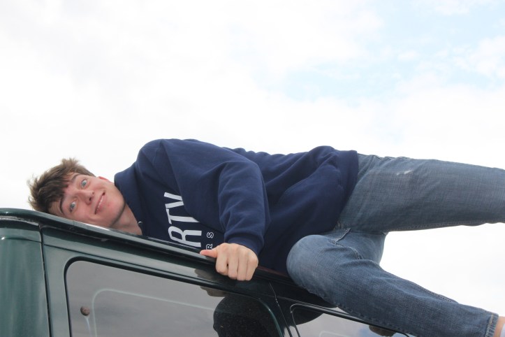 This is Ethan next to a police vehicle. The knowledge of where it was taken lets you understand Ethan’s expression better.