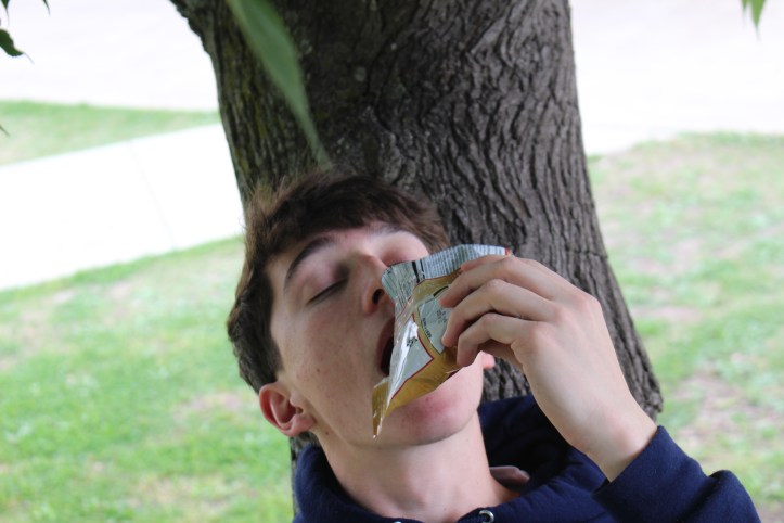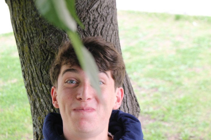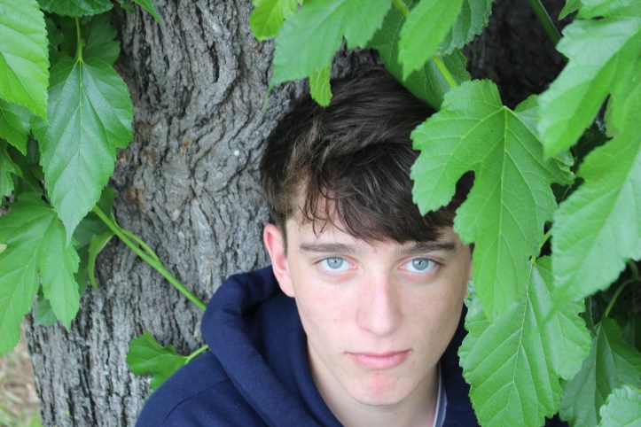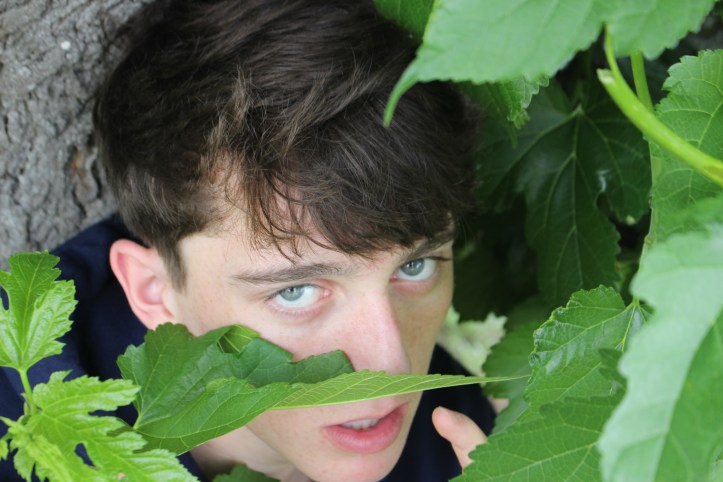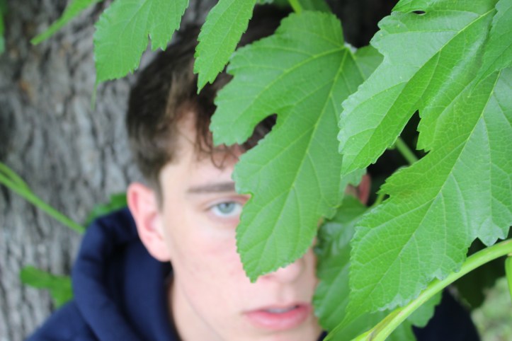 I had Ethan sit, leaning against a trunk, then pull leaves towards hi, like the girl did in the YouTube video. I really like how it makes his eyes pop. I also love his smirk, like he knows something you don’t.